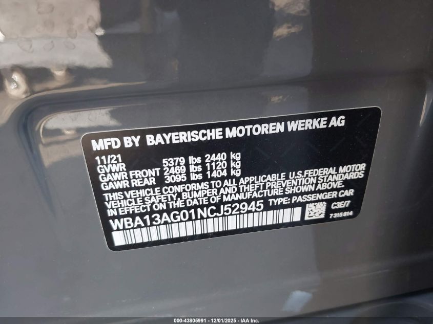2022 BMW 5 SERIES 2022 року Гибрид, 2.0, Задний привод, vin - WBA13AG01NCJ52945 из США