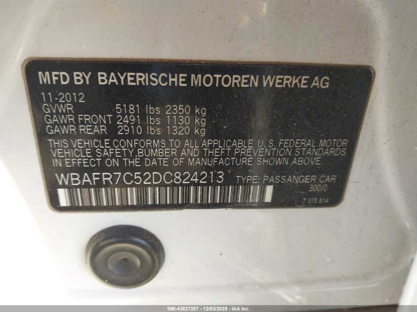 2013 BMW 5 SERIES 2013 року Бензин, 3.0, Задний привод, vin - WBAFR7C52DC824213 из США
