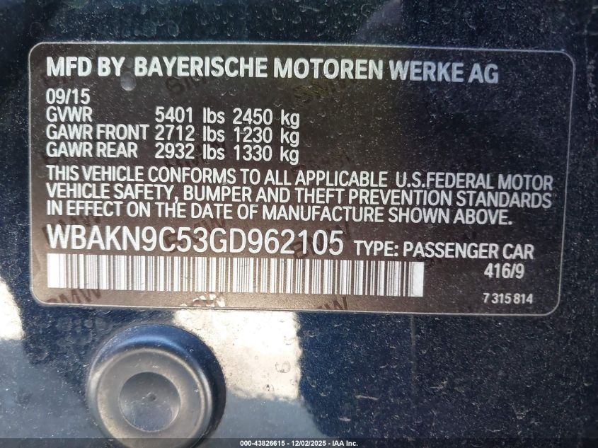 2016 BMW 5 SERIES I