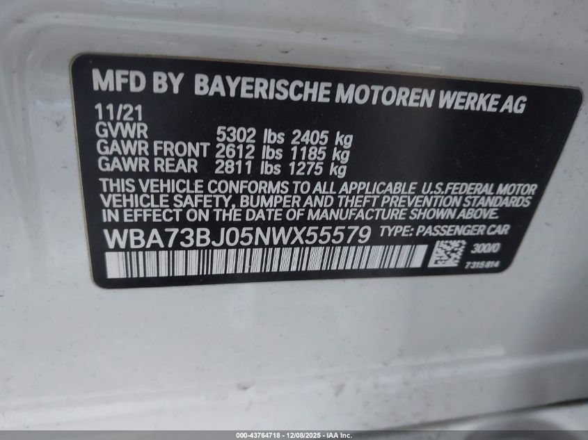 2022 BMW 5 SERIES 2022 року Бензин, 3.0, Полный привод, vin - WBA73BJ05NWX55579 из США