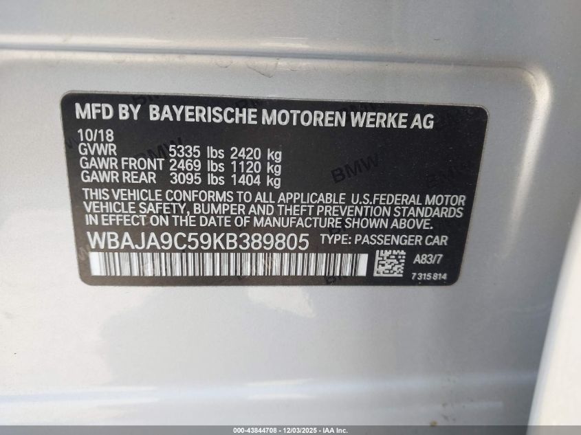 2019 BMW 5 SERIES 2019 року Гибрид, 2.0, Задний привод, vin - WBAJA9C59KB389805 из США