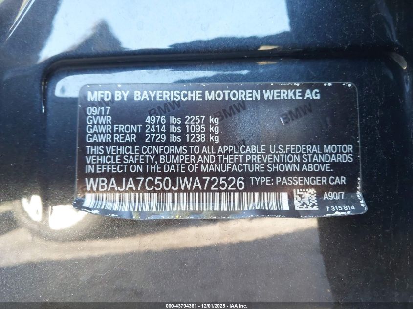 2018 BMW 5 SERIES 2018 року Бензин, 2.0, Полный привод, vin - WBAJA7C50JWA72526 из США