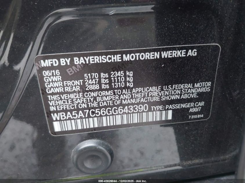 2016 BMW 5 SERIES 2016 року Бензин, 2.0, Полный привод, vin - WBA5A7C56GG643390 из США