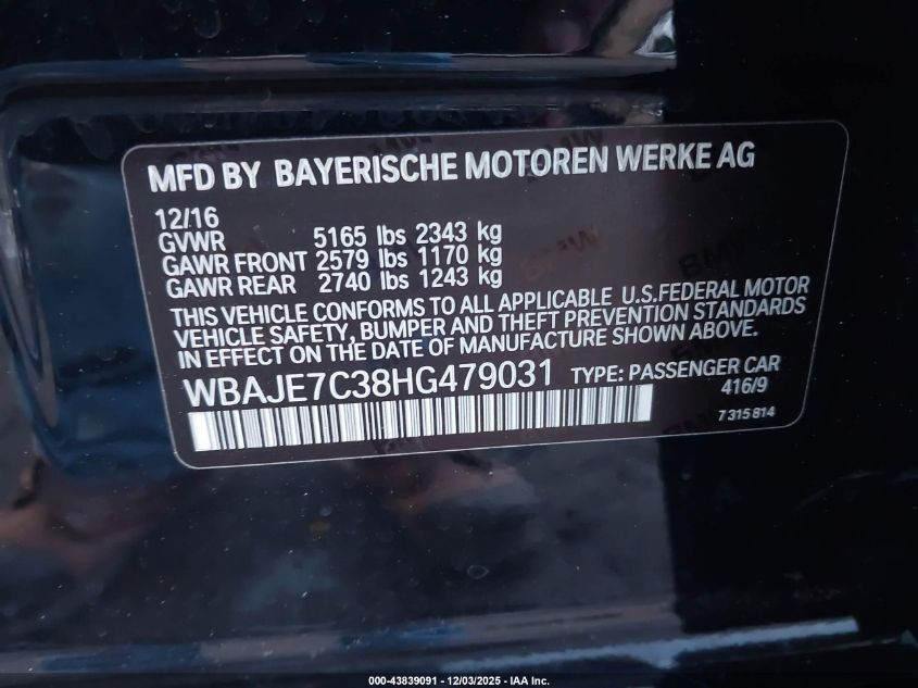 2017 BMW 5 SERIES 2017 року Бензин, 3.0, Полный привод, vin - WBAJE7C38HG479031 из США