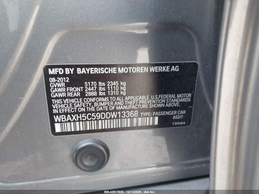 2013 BMW 5 SERIES 2013 року Бензин, 2.0, Полный привод, vin - WBAXH5C59DDW13368 из США