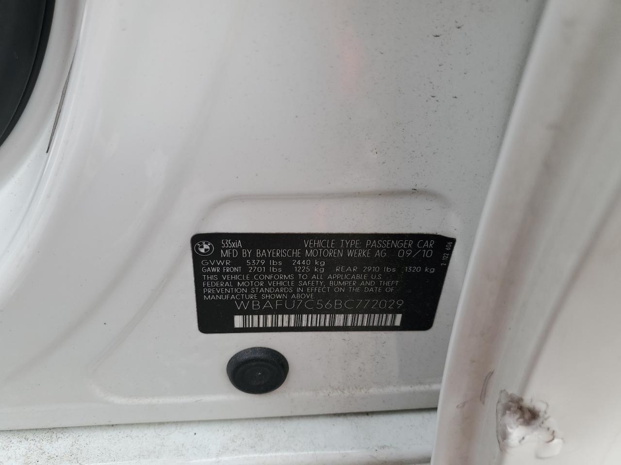 2011 BMW 5 SERIES 2011 року Бензин, 3.0, Полный привод, vin - WBAFU7C56BC772029 из США
