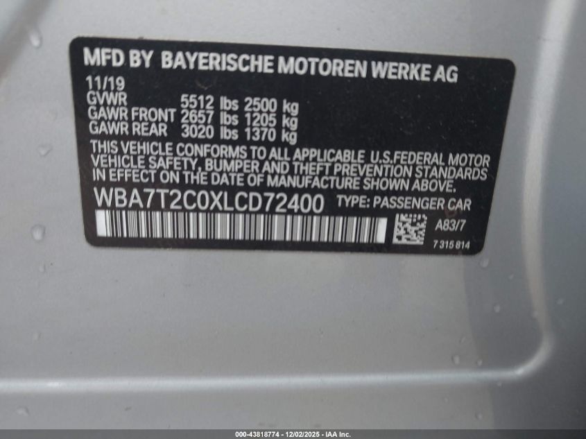 2020 BMW 7 SERIES 2020 року Бензин, 3.0, Задний привод, vin - WBA7T2C0XLCD72400 из США