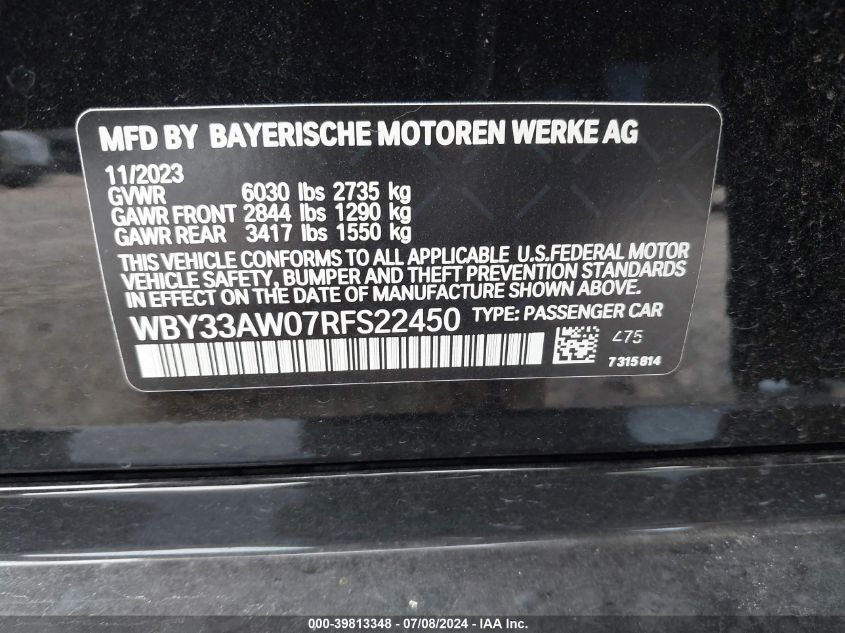 2024 BMW I4 2024 року Электрический, U, Полный привод, vin - WBY33AW07RFS22450 из США