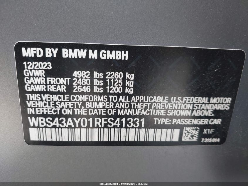 2024 BMW M3 2024 року Бензин, 3.0, Полный привод, vin - WBS43AY01RFS41331 из США