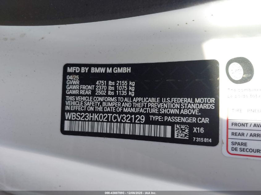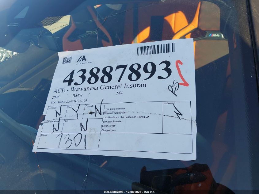 2026 BMW M4 2026 року Бензин, 3.0, Задний привод, vin - WBS23HK02TCV32129 из США