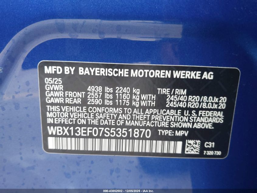 2025 BMW X1 2025 року Бензин, 2.0, Полный привод, vin - WBX13EF07S5351870 из США