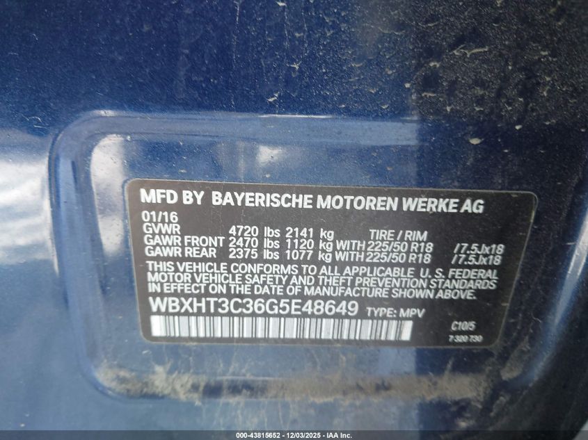 2016 BMW X1 2016 року Бензин, 2.0, Полный привод, vin - WBXHT3C36G5E48649 из США