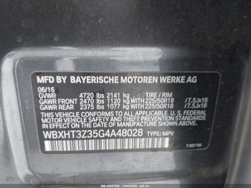 Цвет ОловянныйЦилиндры 4Привод Полный приводVIN WBXHT3Z35G4A48028Состояние СтационарноПовреждения По всему авто AutoRIA