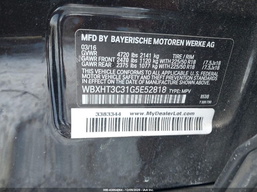 Цвет ЧерныйЦилиндры 4Привод Полный приводVIN WBXHT3C31G5E52818Состояние СтационарноПовреждения Передняя или задняя AutoRIA