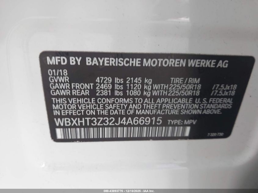 2018 BMW X1 2018 року Бензин, 2.0, Полный привод, vin - WBXHT3Z32J4A66915 из США