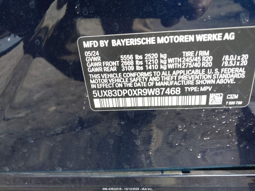 2024 BMW X3 2024 року Бензин, 3.0, Полный привод, vin - 5UX83DP0XR9W87468 из США