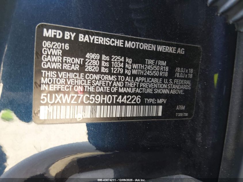 2017 BMW X3 2017 року Бензин, 2.0, , vin - 5UXWZ7C59H0T44226 из США