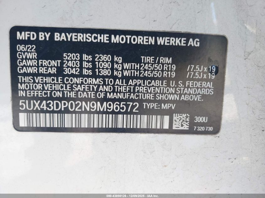 2022 BMW X3 2022 року Бензин, 2.0, , vin - 5UX43DP02N9M96572 из США