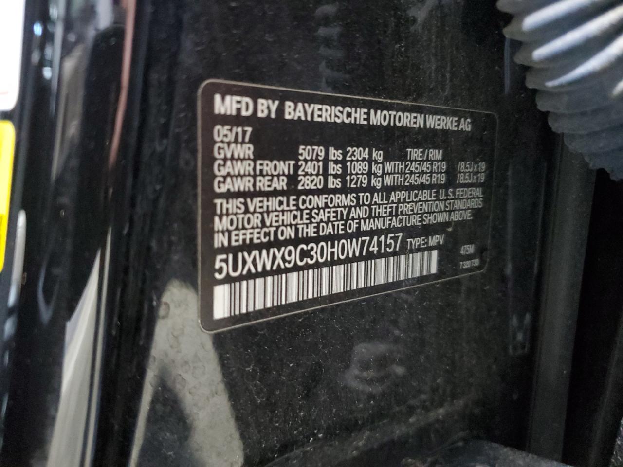 Цвет Древесный угольЦилиндры 4Привод Полный приводVIN 5UXWX9C30H0W74157Состояние Заводится и едет (проверено)Повреждения Передняя или задняя AutoRIA