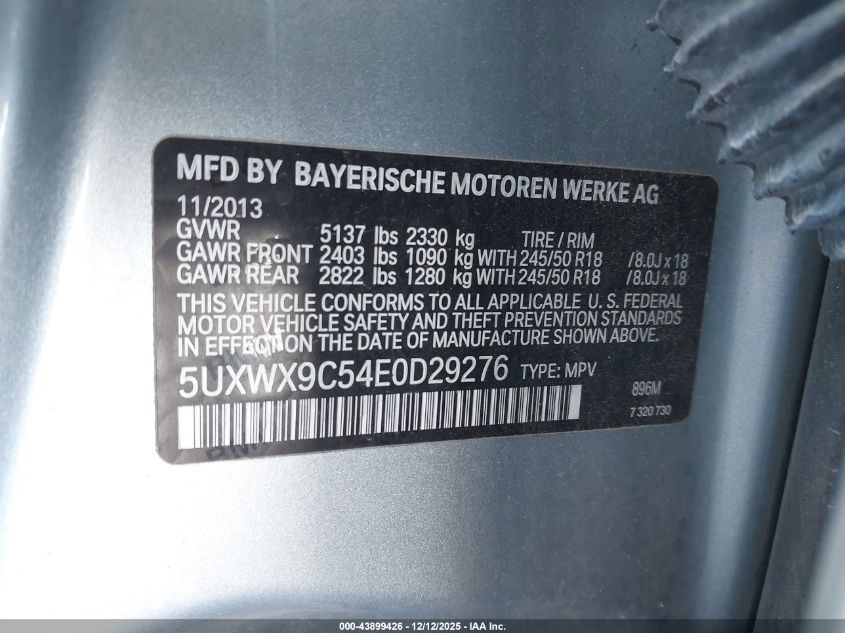 Цвет СинийЦилиндры 4Привод Полный приводVIN 5UXWX9C54E0D29276Состояние Заводится и едет (проверено)Повреждения Передняя или задняя AutoRIA