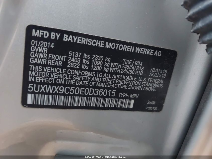 2014 BMW X3 2014 року Бензин, 2.0, Полный привод, vin - 5UXWX9C50E0D36015 из США