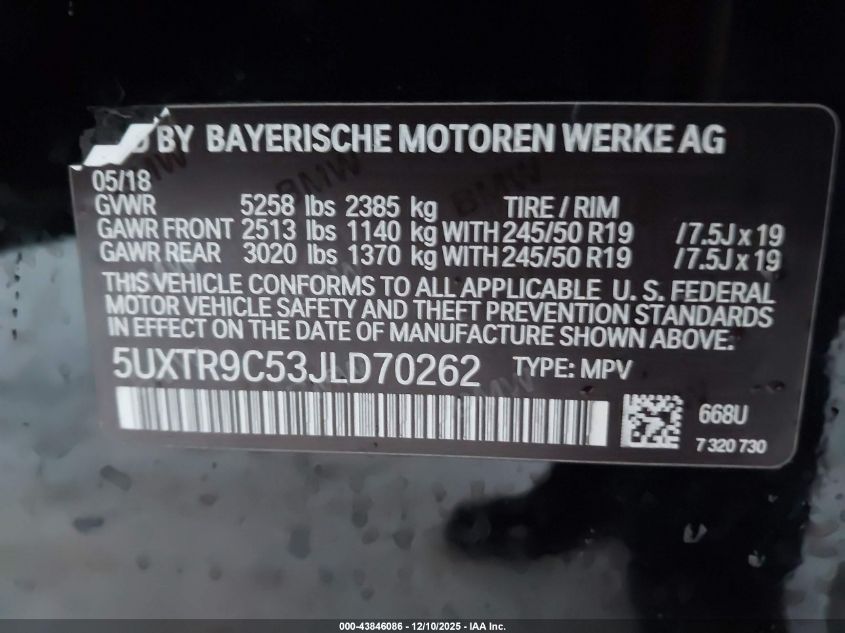 2018 BMW X3 2018 року Бензин, 2.0, Полный привод, vin - 5UXTR9C53JLD70262 из США