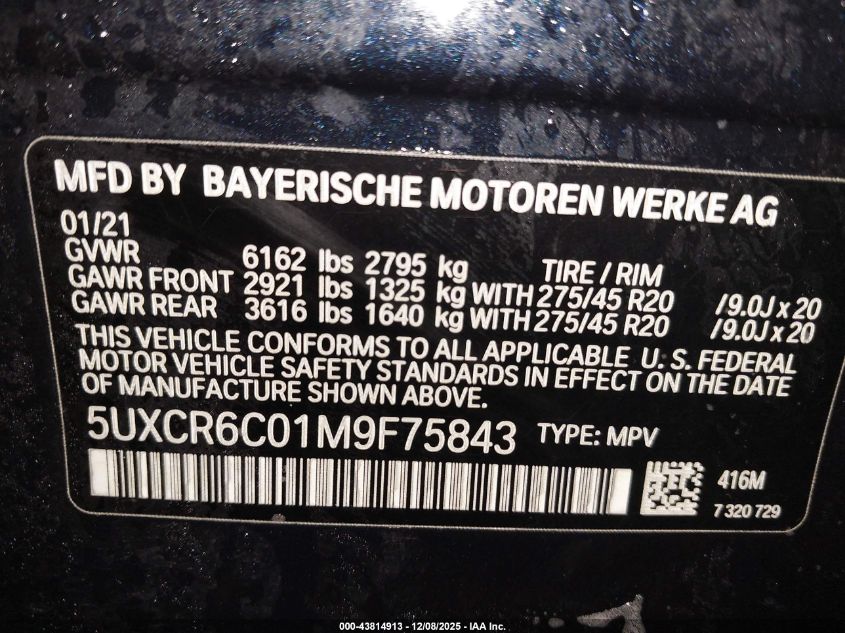 2021 BMW X5 2021 року Бензин, 3.0, Полный привод, vin - 5UXCR6C01M9F75843 из США