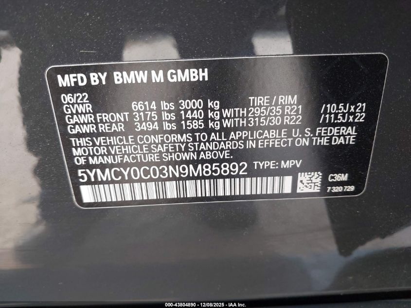 Цвет СерыйЦилиндры 8Привод Полный приводVIN 5YMCY0C03N9M85892Состояние СтационарноПовреждения По бокам AutoRIA