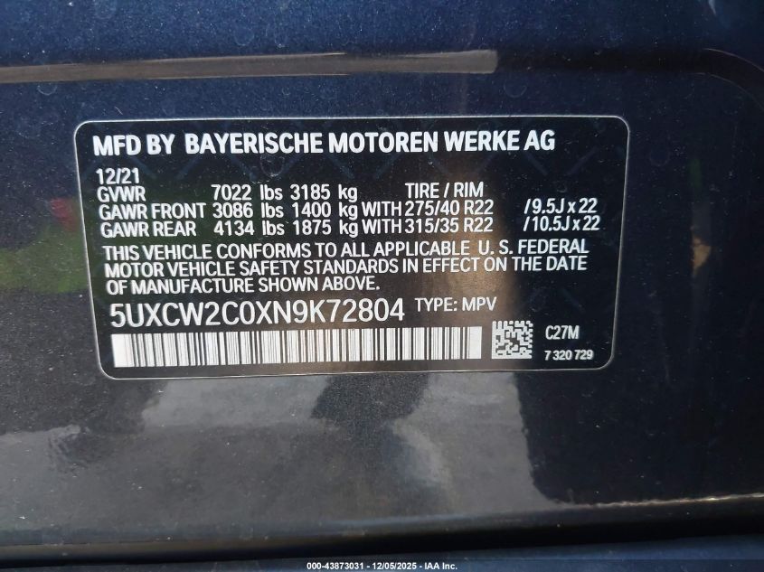 2022 BMW X7 2022 року Бензин, 3.0, Полный привод, vin - 5UXCW2C0XN9K72804 из США