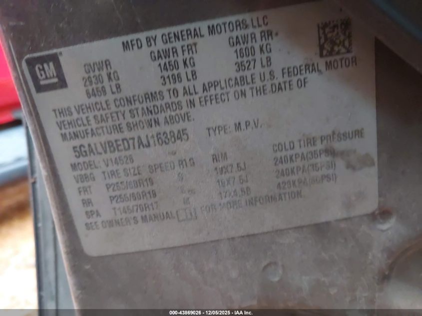 2010 BUICK ENCLAVE 2010 року Бензин, 3.6, Полный привод, vin - 5GALVBED7AJ163845 из США