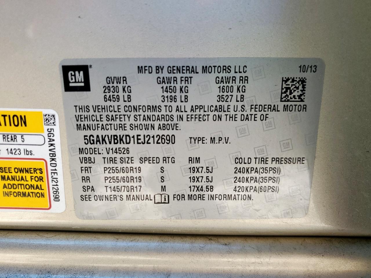 Цвет БежевыйЦилиндры 6Привод Полный приводVIN 5GAKVBKD1EJ212690Состояние Заводится и едет (проверено)Повреждения Передняя или задняя AutoRIA