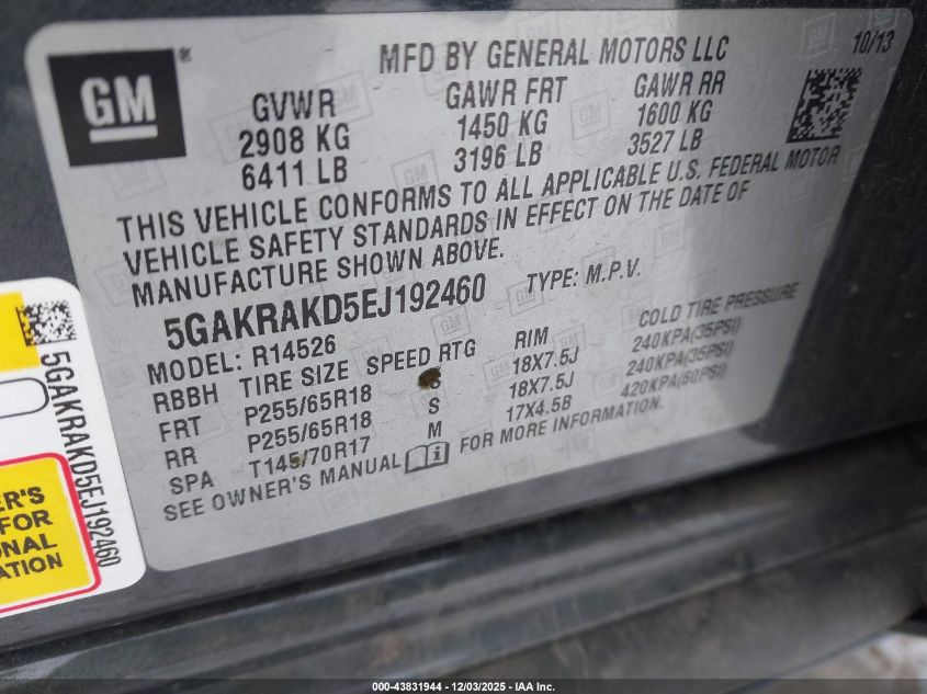 2014 BUICK ENCLAVE 2014 року Бензин, 3.6, Передний привод, vin - 5GAKRAKD5EJ192460 из США