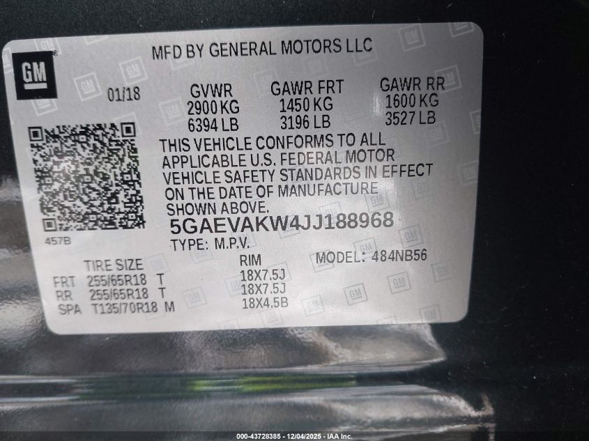 2018 BUICK ENCLAVE 2018 року Бензин, 3.6, Полный привод, vin - 5GAEVAKW4JJ188968 из США