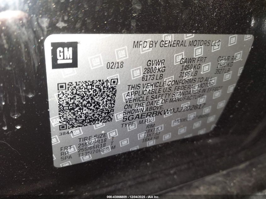 2018 BUICK ENCLAVE 2018 року Бензин, 3.6, Передний привод, vin - 5GAERBKW0JJ202617 из США