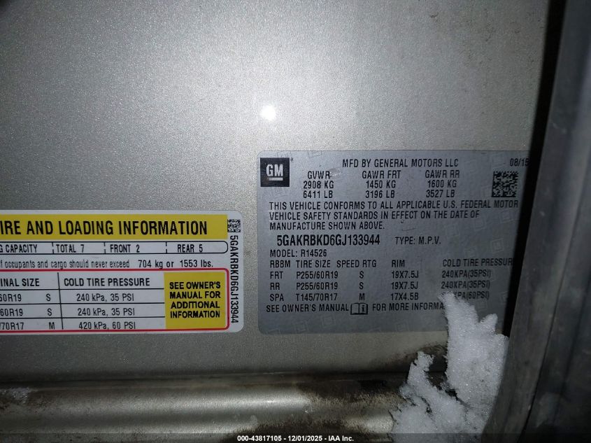 Цвет ЗагарЦилиндры 6Привод Передний приводVIN 5GAKRBKD6GJ133944Состояние Заводится и едет (проверено)Повреждения Передняя или задняя AutoRIA