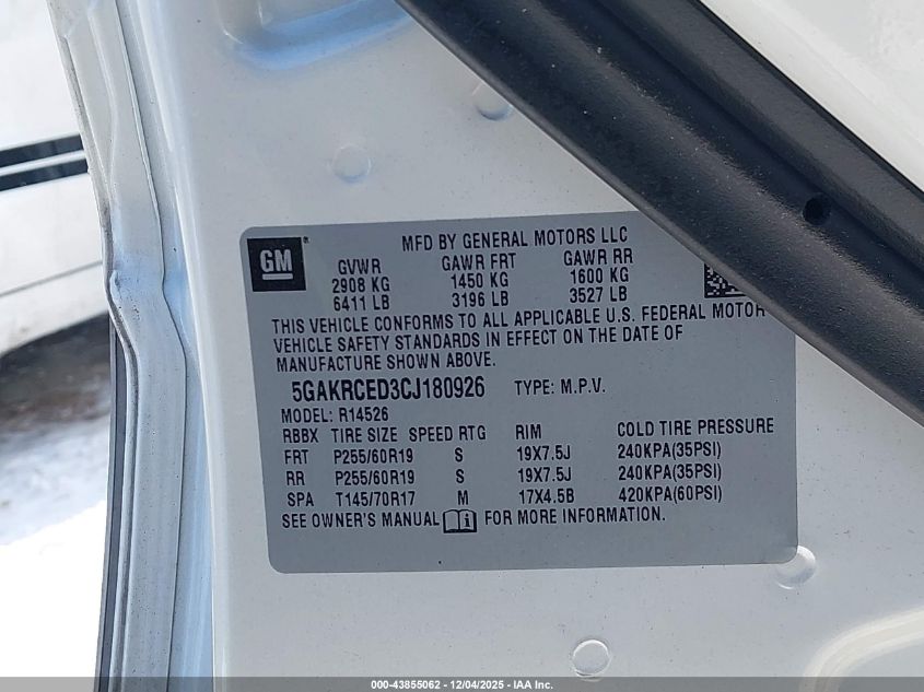 Цвет БелыйЦилиндры 6Привод Передний приводVIN 5GAKRCED3CJ180926Состояние Заводится и едет (проверено)Повреждения Передняя левая AutoRIA