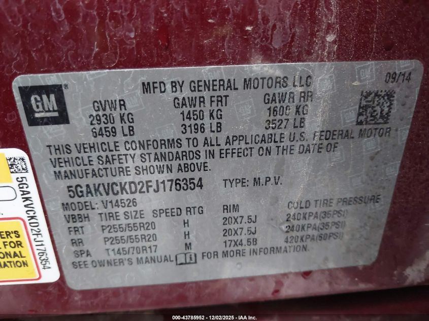 2015 BUICK ENCLAVE 2015 року Бензин, 3.6, Полный привод, vin - 5GAKVCKD2FJ176354 из США