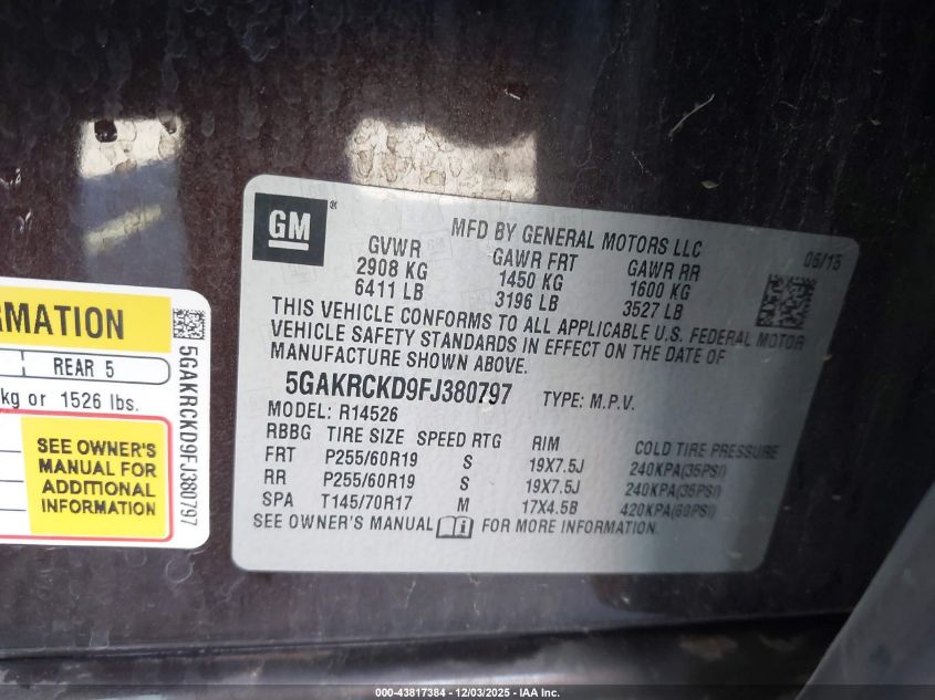 2015 BUICK ENCLAVE 2015 року Бензин, 3.6, Передний привод, vin - 5GAKRCKD9FJ380797 из США