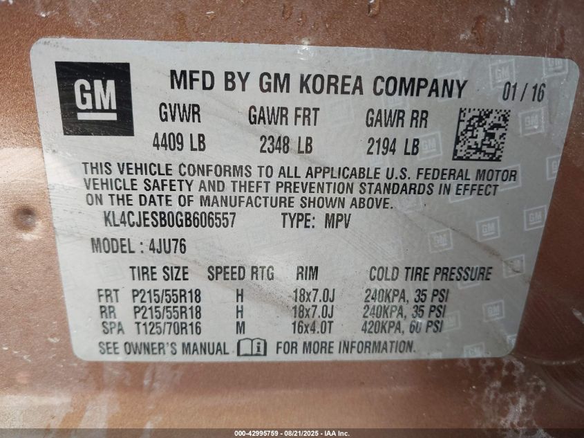 2016 BUICK ENCORE 2016 року Бензин, 1.4, Полный привод, vin - KL4CJESB0GB606557 из США