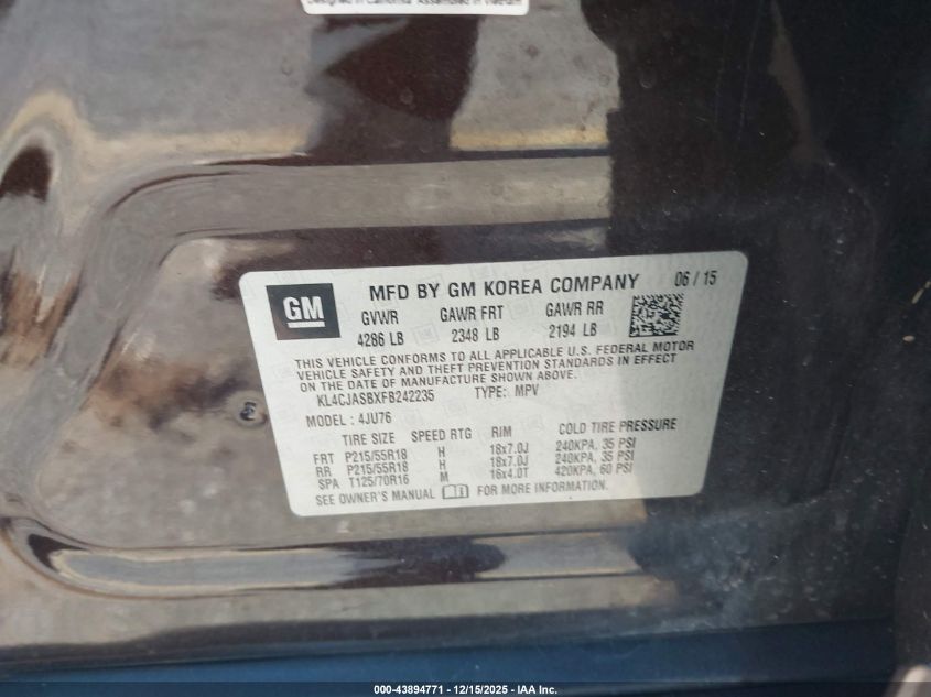 2015 BUICK ENCORE 2015 року Бензин, 1.4, Передний привод, vin - KL4CJASBXFB242235 из США