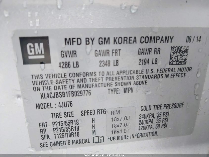 2015 BUICK ENCORE 2015 року Бензин, 1.4, Передний привод, vin - KL4CJBSB1FB029776 из США