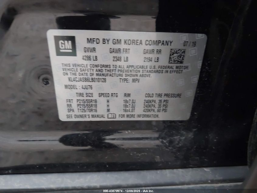 Цвет ЧерныйЦилиндры 4Привод Передний приводVIN KL4CJASB6LB010128Состояние СтационарноПовреждения Передняя или задняя AutoRIA
