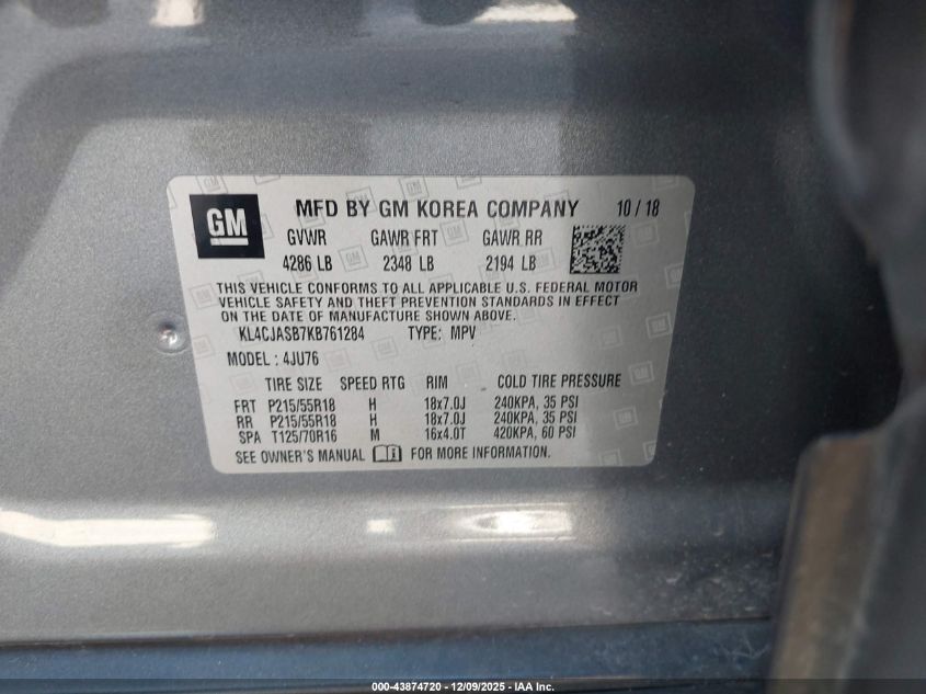 2019 BUICK ENCORE 2019 року Бензин, 1.4, Передний привод, vin - KL4CJASB7KB761284 из США