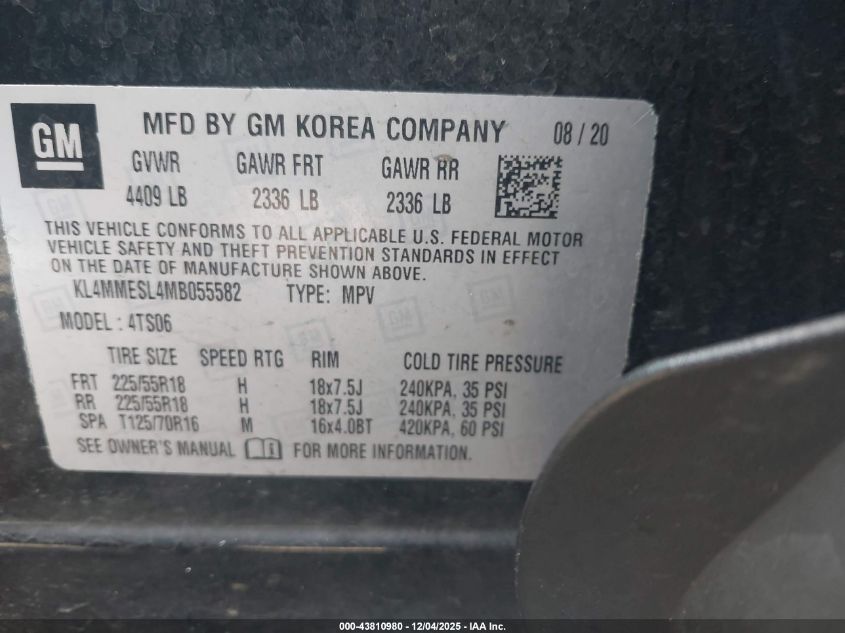 2021 BUICK ENCORE GX 2021 року Бензин, 1.3, Полный привод, vin - KL4MMESL4MB055582 из США