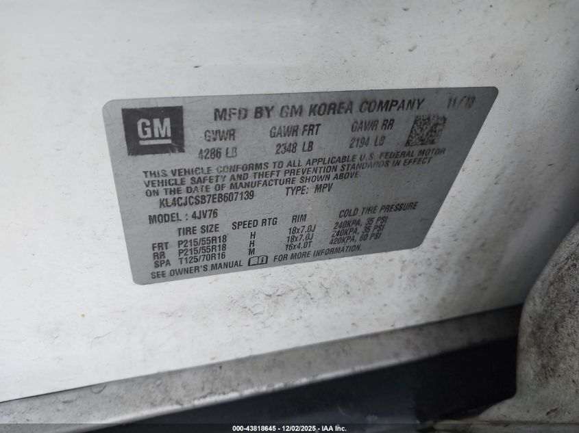 Цвет БелыйЦилиндры 4Привод Передний приводVIN KL4CJCSB7EB607139Состояние Заводится и едет (проверено)Повреждения Передняя или задняя AutoRIA