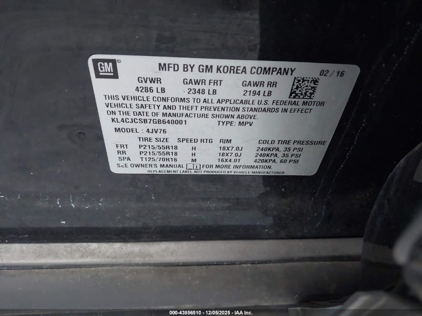 2016 BUICK ENCORE 2016 року Бензин, 1.4, Передний привод, vin - KL4CJCSB7GB640001 из США