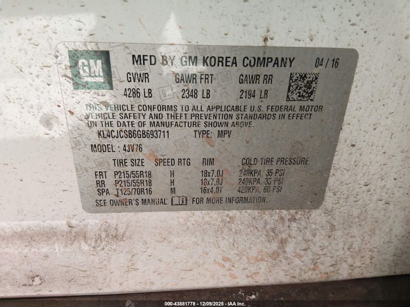 2016 BUICK ENCORE 2016 року Бензин, 1.4, Передний привод, vin - KL4CJCSB6GB693711 из США