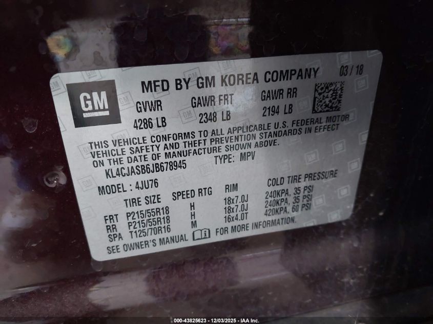 Цвет БургундияЦилиндры 4Привод Передний приводVIN KL4CJASB6JB678945Состояние Заводится и едет (проверено)Повреждения Опрокидывание AutoRIA