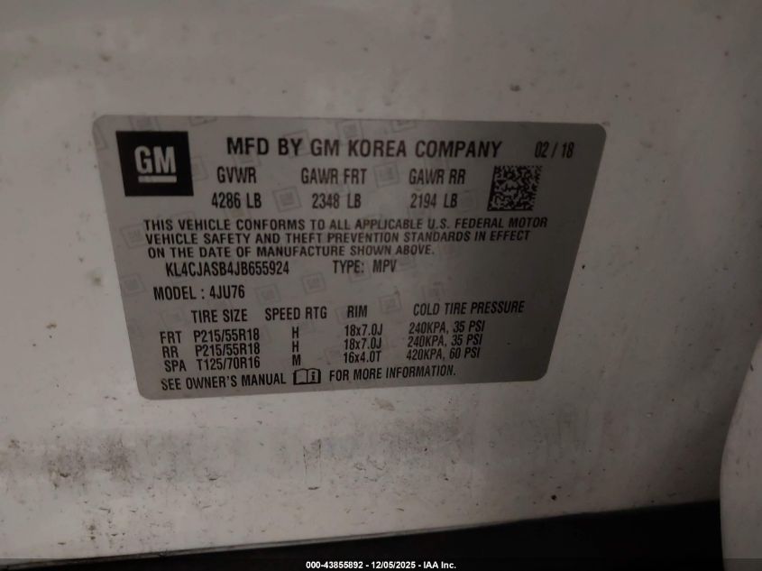 Цвет БелыйЦилиндры 4Привод Передний приводVIN KL4CJASB4JB655924Состояние Заводится и едет (проверено)Повреждения Передняя или задняя AutoRIA
