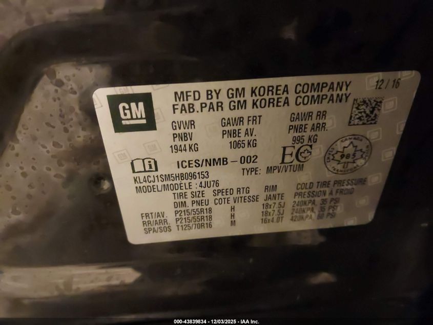 2017 BUICK ENCORE 2017 року Бензин, 1.4, Передний привод, vin - KL4CJ1SM5HB096153 из США